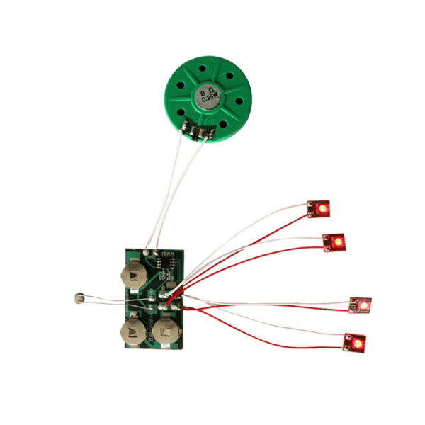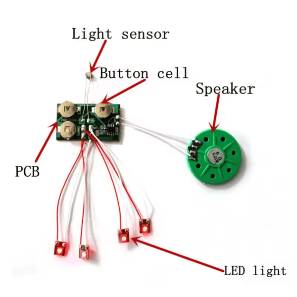 4. Components: voice ic, PCB board, speaker, LED lights and batteries.